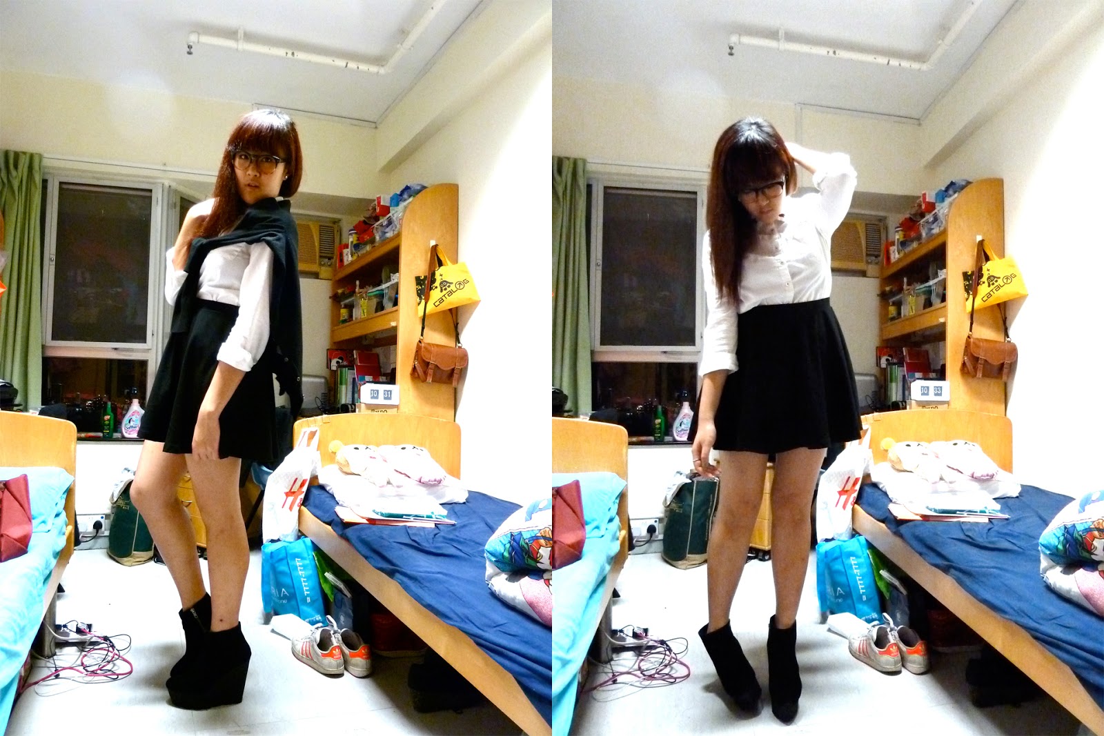 Japanese white shirtCotton On skater skirtCheap Monday wedgesgeneric black cardigan